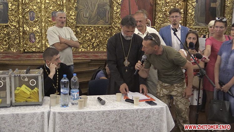 «Відомості результатів голосування по питанню - заміна статуту на нову редакцію: за - 4 голоси, утримались - 4, не заміняти - 515 голосів», - зачитав результати голосування настоятель Свято-Михайлівського кафедрального собору.