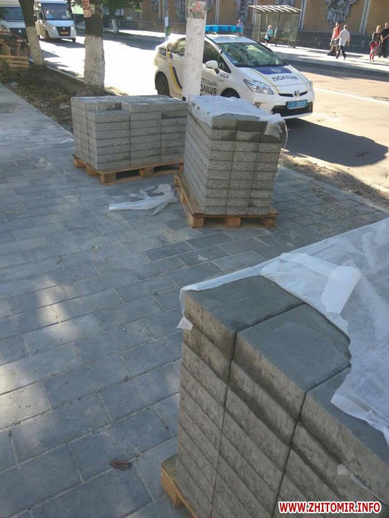 Зранку 2 липня житомирські патрульні затримали чоловіка, який викрав 16 брусків тротуарної плитки з вулиці Київської.