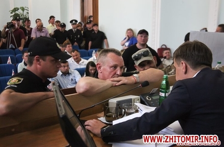 4 липня розпочалася чергова, двадцять третя сесія депутатів Житомирської міської ради. З самого ранку біля будівлі мерії можна було побачити чоловіків у військовій формі та футболками з написом «Айдар», а також представників поліції. Начальник ГУНП в області пояснив, що правоохоронці прибули для охорони правопорядку під час зібрання.