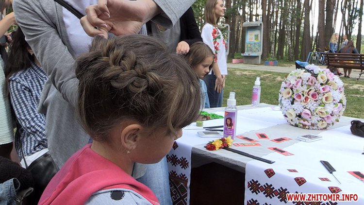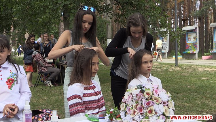 «Не ріж косу дівочую» – саме під таким гаслом на Івана Купала у житомирському гідропарку проходить майстер-клас із плетіння волосся. Серед найзатребуваніших дизайнів плетіння, каже пані Олеся, об’ємні косички.