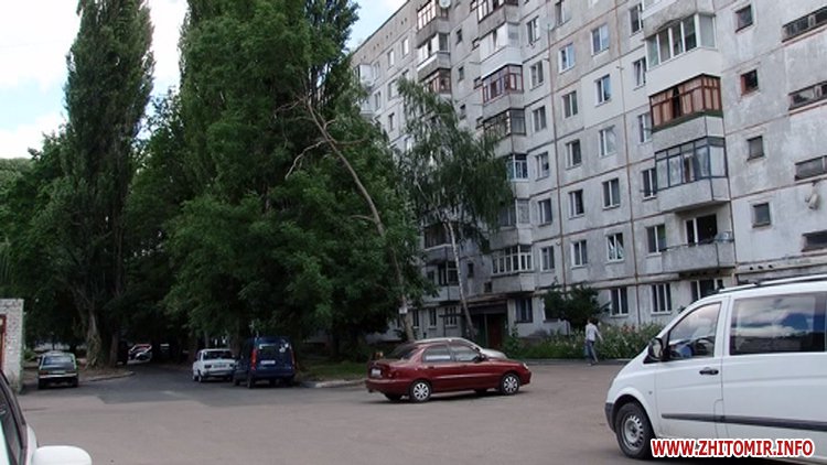 Ця звичайна і досі спокійна житомирська багатоповерхівка днями пережила вражаючу криваву історію. Тут серед білого дня жорстоко побилися дві сусідки похилого віку. Конфлікт розпочався у під’їзді біля ліфта і завершився уже на вулиці, на очах у випадкових перехожих. Втихомирити розлючених та скривавлених бабусь вдалося лише поліцейським. В результаті одна з учасників бійки потрапила до лікарні з травмою голови.