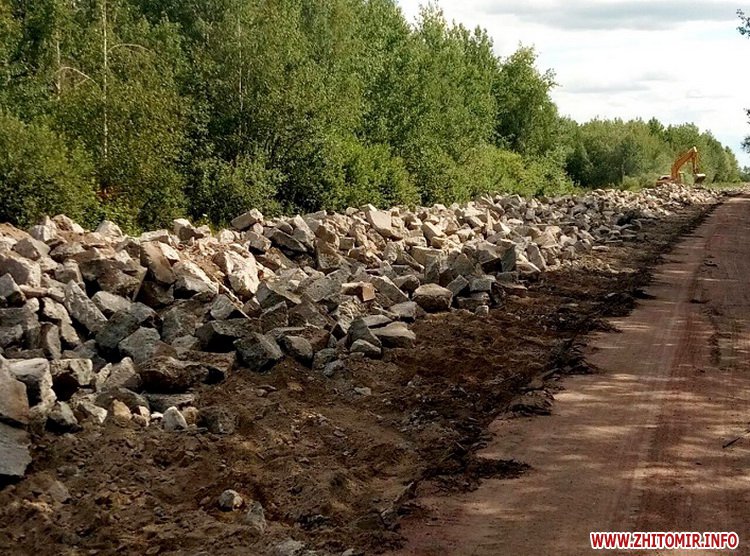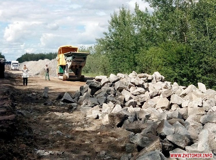 За інформацією прес-служби Житомирської облдержадміністрації, роботи на дорозі Глибочиця - Станишівка виконує підрядна організація ПП «Автомагістраль», станом на 7 липня вже повністю розібране дорожнє покриття.