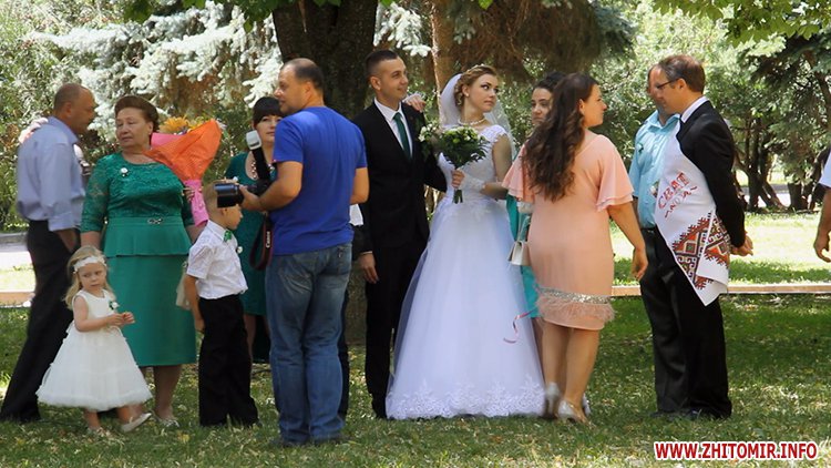 «У літній період у нас, у будні дні, з вівторка по п’ятницю, зазвичай 18-20 державних реєстрацій шлюбу. Сьогодні у нас заплановано 38 державних реєстрацій. По пілотному проекту - шлюб за добу, одружуються 4 пари», - розповідає начальник Житомирського міського відділу державної реєстрації актів цивільного стану Наталія Кондратюк.