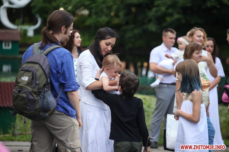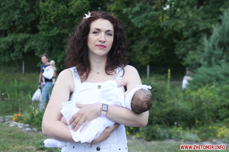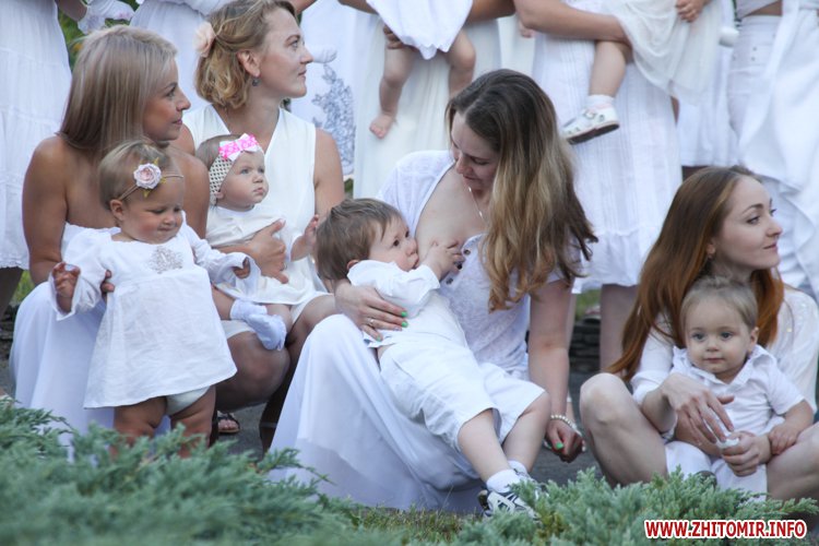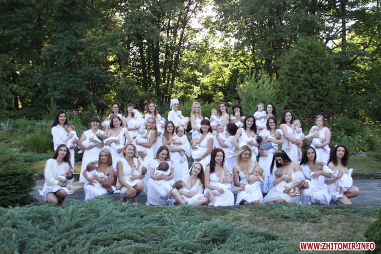 Увечері 7 липня в житомирському ботанічному саду в рамках проекту «Молочні ріки любові» 29 годуючих мам влаштували спільну фотосесію. Усі жінки були одягнені в білі сукні. Їхні світлини будуть презентовані під час фотовиставки упродовж всесвітнього тижня грудного вигодовування, що стартує з 1 серпня.