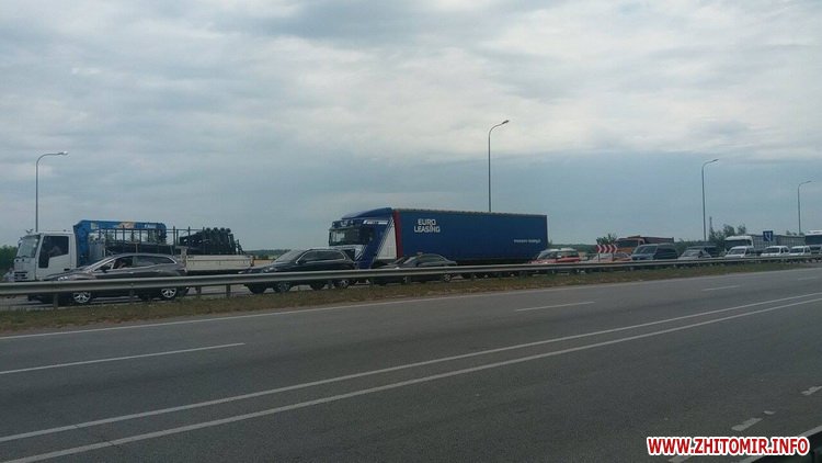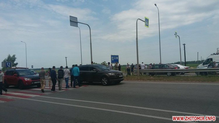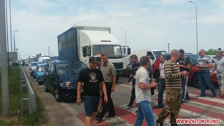 Біля повороту на село Левків Житомирського району в обід 11 липня учасники АТО перекрили трасу Київ-Чоп.