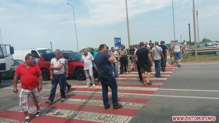 Як повідомляв Житомир.info, біля приміщення управління Держгеокадастру в Житомирській області вранці 11 липня зібрались близько 500 учасників АТО з міста Житомира та різних районів Житомирщини. Вони збираються перекривати трасу Київ-Чоп.