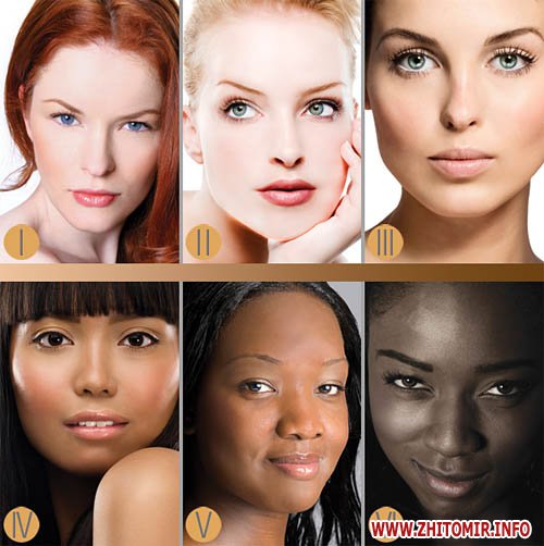 Тепер детальніше про фото типи шкіри. Виділяють такі, як кельтський, народичний, середньоєвропейський, південно-європейський, індонезійський та афроамериканський.