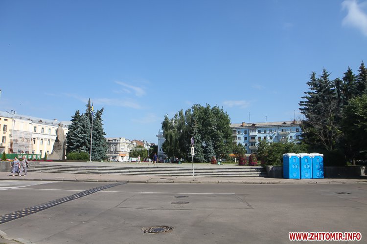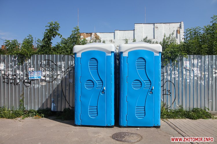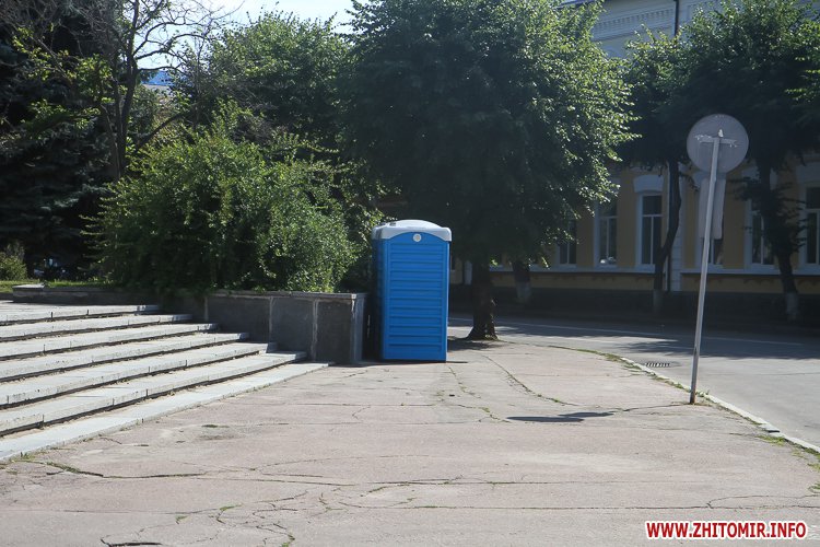 17 липня на початку вулиці Лятошинського та на майдані Корольова тимчасово розмістили біотуалети - відповідно дві і три кабінки, але вони ще не працюють. Вочевидь, за вказаними адресами їх розмістять після засідання виконкому.