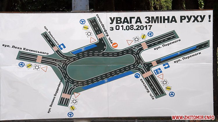 Нагадаємо, 4 квітня 2017 року Верховна Рада змінила правила проїзду кругових перехресть: тепер перевага в русі на перехрестях, де організовано круговий рух, надається транспортним засобам, які вже рухаються по колу. 27 квітня цього ж року в Житомирській міськраді засідала робоча група, яка вирішувала, де передбачити велосипедні доріжки на круговому перехресті у Житомирі. На засідання 7 червня міськвиконком доручив пришвидшити розробку проекту руху транспорту на майдані Соборному.