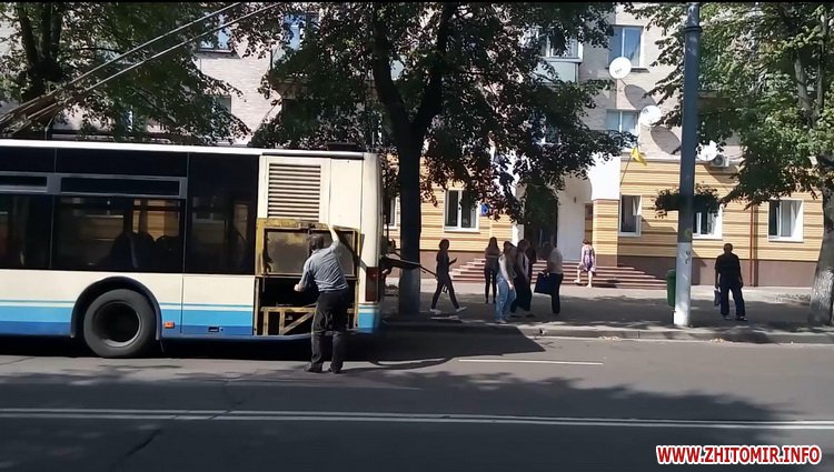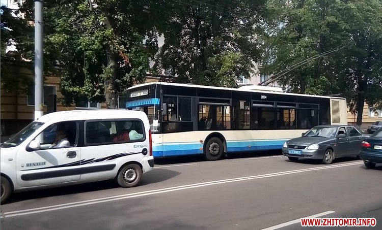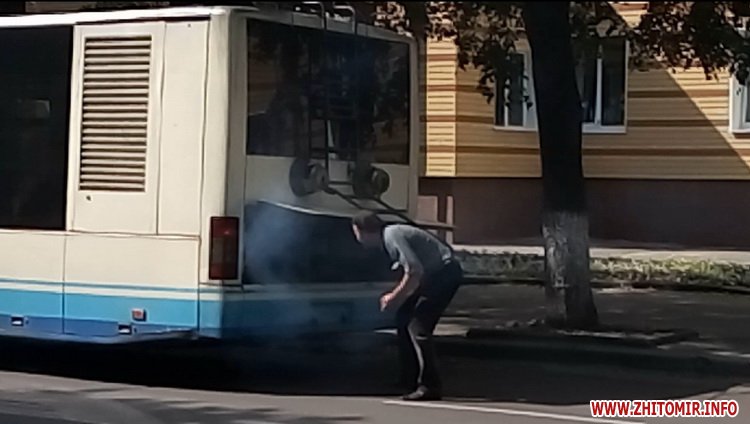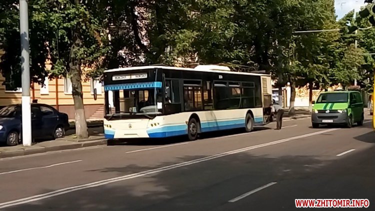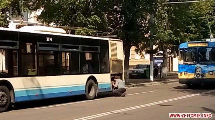 «У Житомирі на вул. Велика Бердичівська, поблизу до перехрестя з Театральною, задимівся тролейбус №1. Водій випустив людей, зняв штанги та почав його ремонтувати», - повідомив читач.