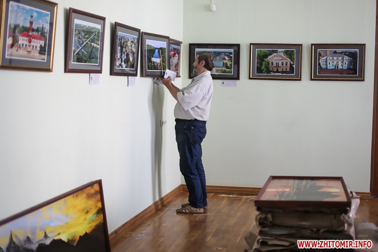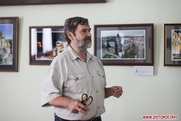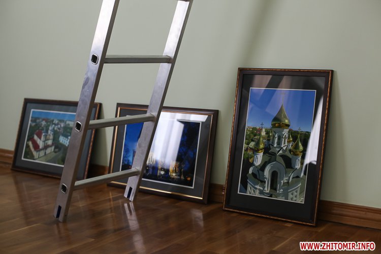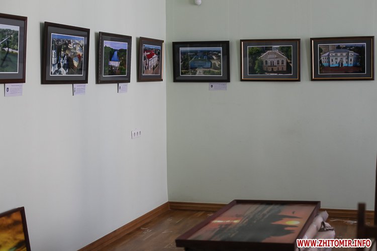 «Закарпатська, Львівська, Хмельницька, Чернівецька області, вся географія, вся Україна охоплена. Тут у нас – твердиня, потужні захисні споруди і міста, сусідній зал – храми, а основний зал – це Житомир і визначні його місця з погляду птаху. 90% знято з квадрокоптеру, хоча є й місця, зняті з верхньої точки», – говорить фотограф.