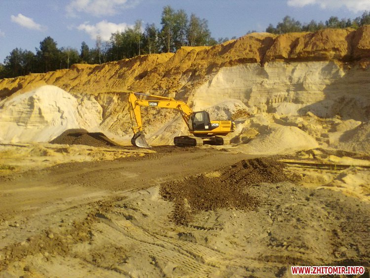 Як повідомляв Житомир.info, на початку липня Держекоінспекція зафіксувала випадок незаконного видобування піску - неподалік села Глибочок Коростишівського району. Правоохоронці взялися розшукувати ділка, який вирубав сосни та вивозив пісок.