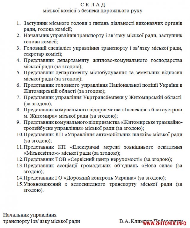 Влада Житомира хоче затвердити новий склад комісії з безпеки дорожнього руху.
