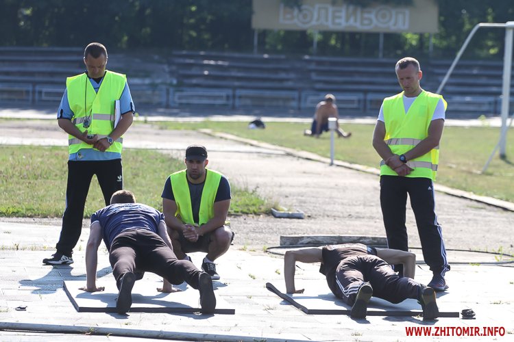 Уранці 20 липня на стадіоні Житомирського агротехнічного коледжу кандидати до патрульної поліції Житомира проходили випробовування на фізичну витривалість.