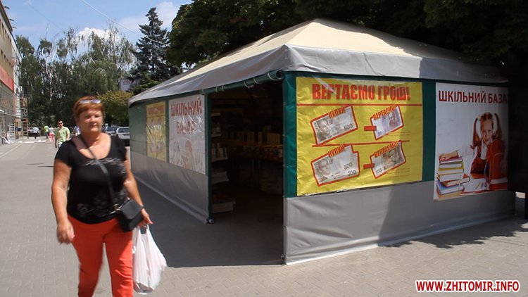 Як відомо виконком погодив три адреси для проведення шкільного базару у Житомирі: Житній ринок, 1, Київська, 77 та Івана Кочерги, 5. Однак, станом на 20 липня за останньою адресою ми так і не знайшли зеленої палатки із канцтоварами.