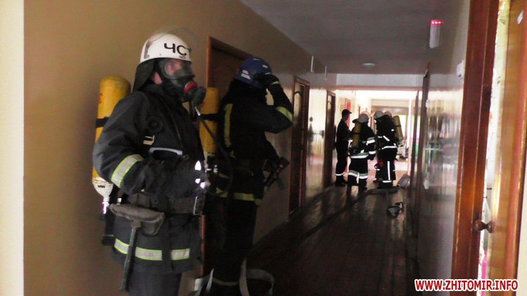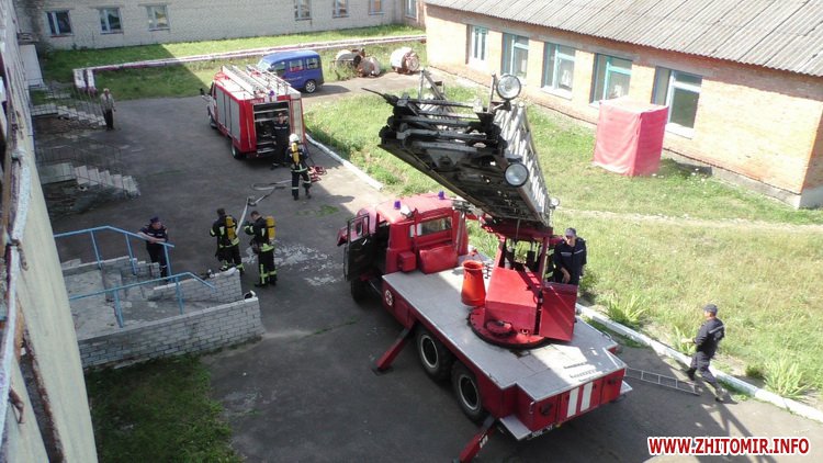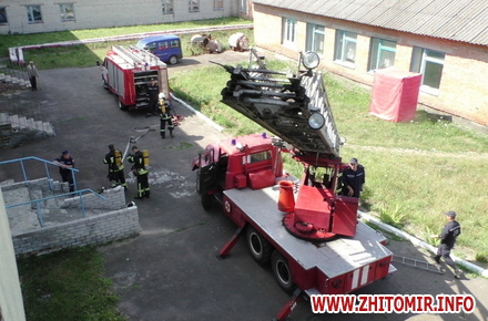 «20 липня до Служби порятунку «101» від чергової медсестри надійшло повідомлення про пожежу в Геріатричному центрі, що в с. Іванівка Житомирського району. З вікон третього поверху корпусу виходив густий дим. Сам осередок загоряння знаходився в палаті №42. Персонал почав негайно проводити евакуацію хворих із небезпечної зони. Члени добровільної пожежної дружини приступили до гасіння пожежі первинними засобами пожежогасіння. Саме така легенда була взята за основу тренувального тактико-спеціального навчання з особовим складом чергових караулів підрозділів Житомирського міського гарнізону», - пишуть рятувальники.