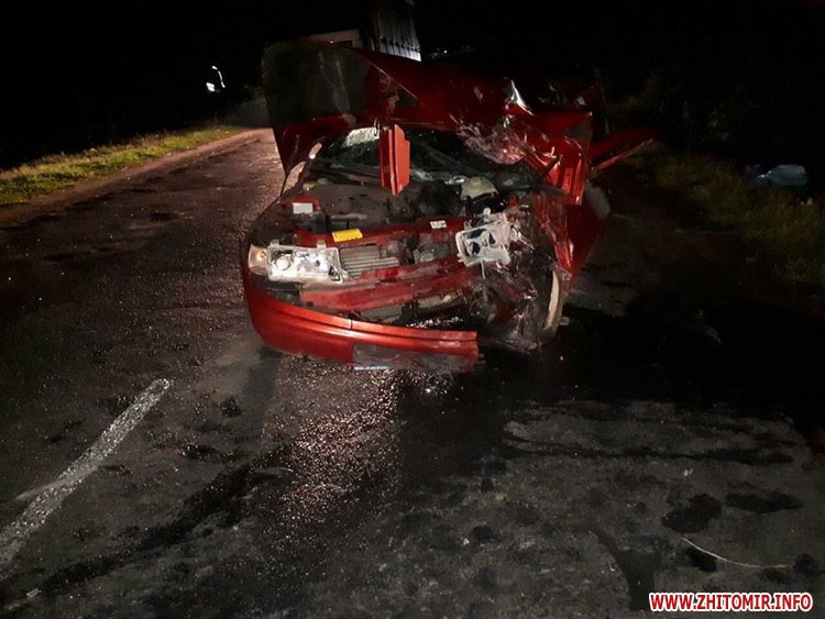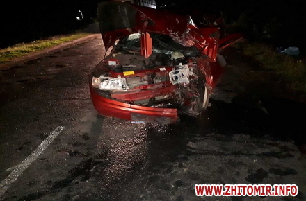 «Дорожньо-транспортна пригода сталася близько півночі. За наявною інформацією, ВАЗ-2111, за кермом якого перебував 47-річний житель с. Красноволиці, і який рухався у напрямку Чуднова, на середині проїжджої частини дороги зіткнувся із зустрічним ВАЗ-2118, яким керував 47-річний житель с. Довжика Житомирського району. Унаслідок ДТП загинула пасажирка, 44-річна дружина водія ВАЗ-2111. Сам кермувальник та його ще один 50-річний пасажир доставлені до лікарні. Також госпіталізований і водій іншої ВАЗівки. Досудове розслідування проводиться за ч.2 ст. 286 (Порушення правил безпеки дорожнього руху або експлуатації транспорту особами, які керують транспортними засобами) Кримінального кодексу України. Санкція статті передбачає за діяння, які спричинили загибель кількох осіб, покарання у вигляді позбавлення волі на термін від 5 до 10 років», - йдеться у повідомленні.