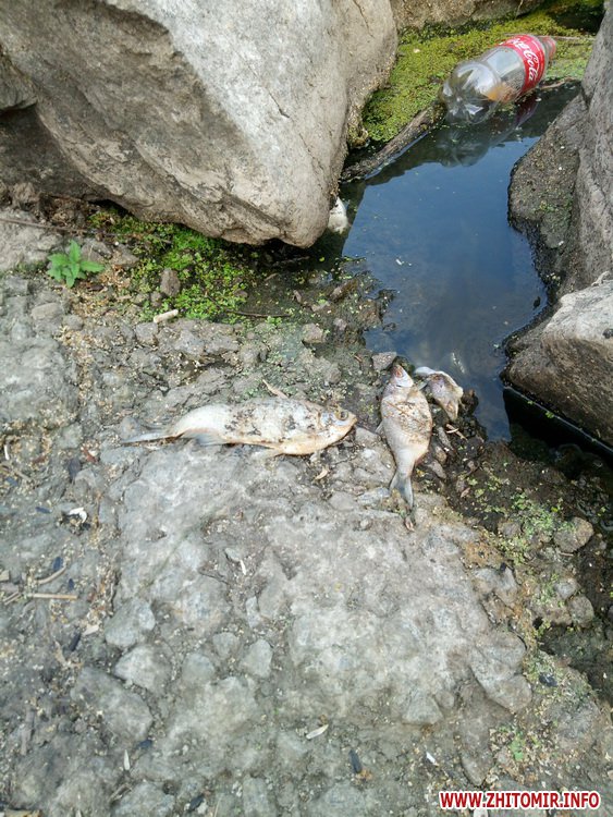 Як повідомляв Житомир.info, 25 липня цього року житомирські рибалки ходили до заступника мера скаржитися на дохлу рибу в районі колишньої паперової фабрики. Після розмови чиновник виїхав на вулицю Івана Гонти, на яку вказували ходаки, де через поломку трубопроводубув зафіксований порив води. 26 липня на кількох житомирських вулицях не було води, однак у мерії запевняють, що воду постійно підвозять.
