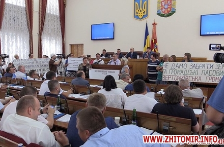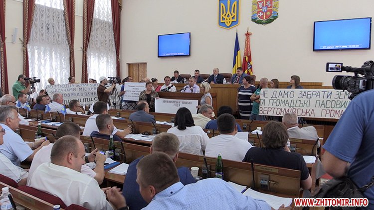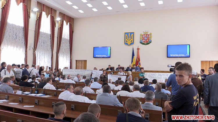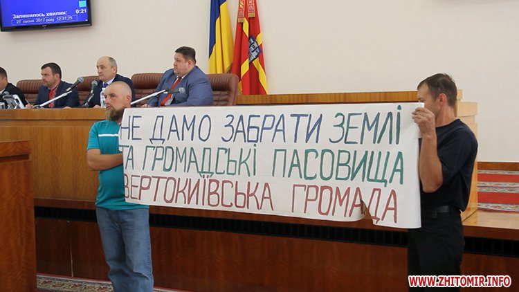 З плакатами в руках громада села Кодня прийшли на сесію Житомирської облради 27 липня, щоб розповісти про проблему, яка виникла в їхньому та сусідніх селах. Люди розповідають у той час, коли селяни не можуть оформити землю, яку десятиліттями обробляють, особи, які не проживають на території села, стрімкими темпами отримують погодження у ГУ Держгеокадастру в Житомирські області.