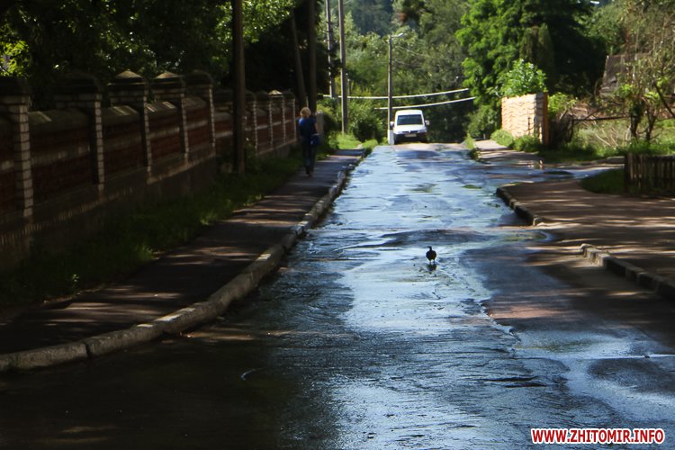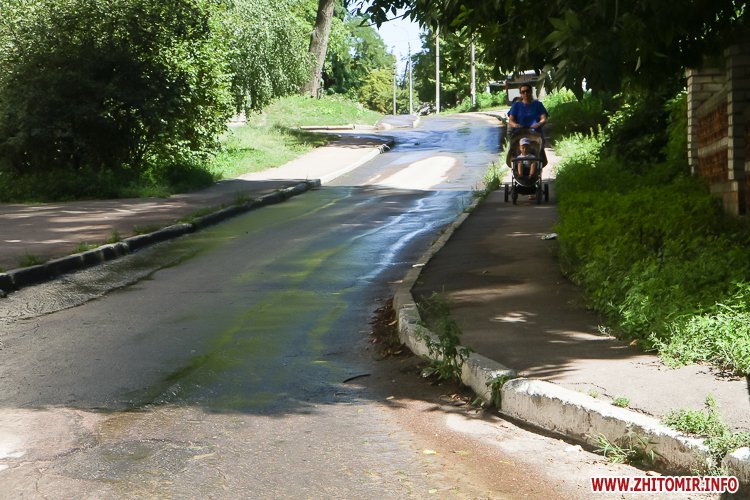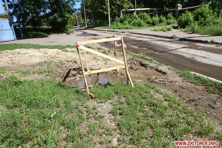 Фотокореспонденту Житомир.info місцеві жителі розповіли, що прорив стався у п'ятницю, 28 липня, і станом на 11:30, 31 липня, водоканал так і не почав ремонтувати.