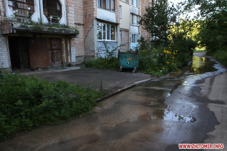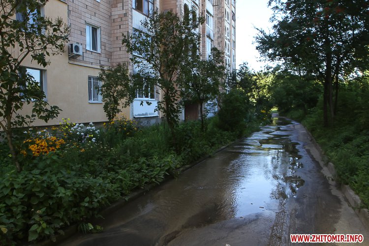 У Житомирі на Польовій 28 липня стався черговий порив, вода з-під асфальту тече вже третій день.
