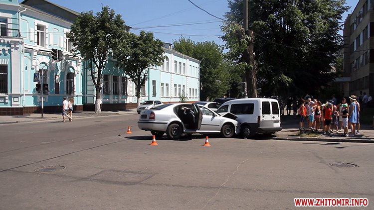 2 серпня на перехресті вулиць Святослава Ріхтера та Івана Франка у Житомирі, неподалік музшколи і дитячої поліклініки, зіштовхнулись три автомобілі.