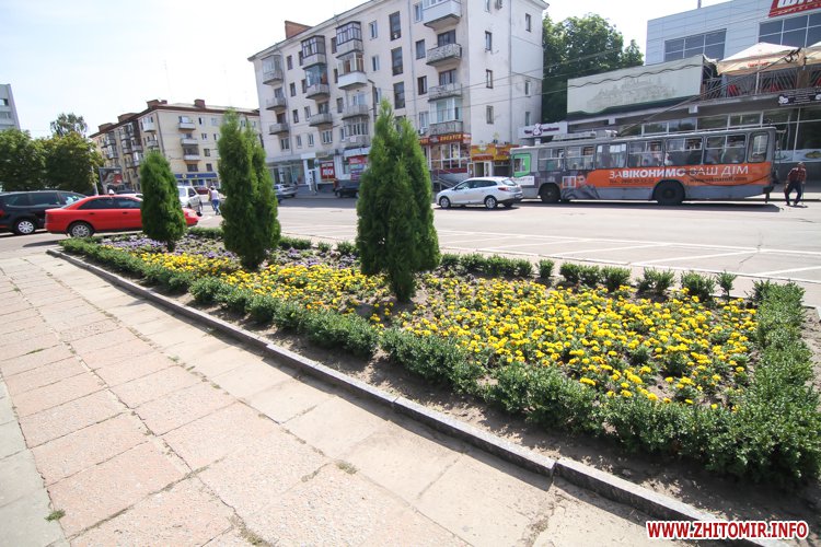 Крім того, вже в 2017 році «Зеленбуд» збирався осучаснити 20 квітників, зокрема, той, який прикрашає майдан Корольова. Зараз там барвиста клумба з туями, й помітно, що над дизайном центрального квітника добре попрацювали.