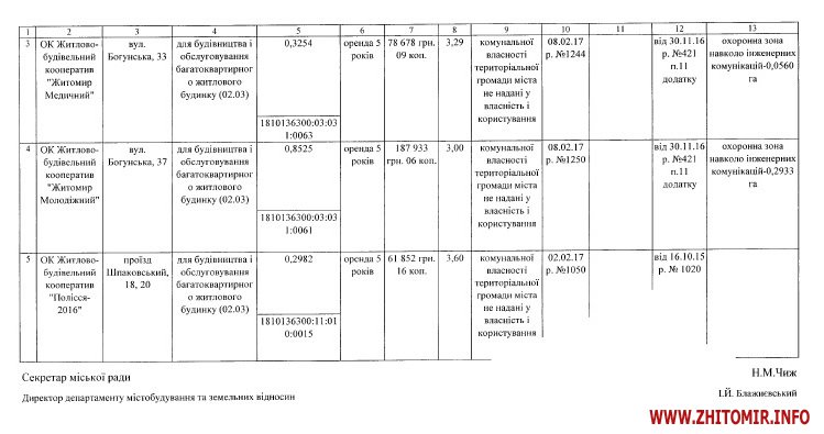 Влада Житомира збирається скасувати один з пунктів рішення про надання права користування земельними ділянками житлово-будівельним кооперативам.