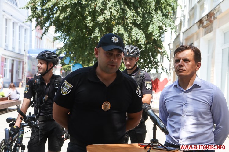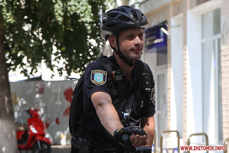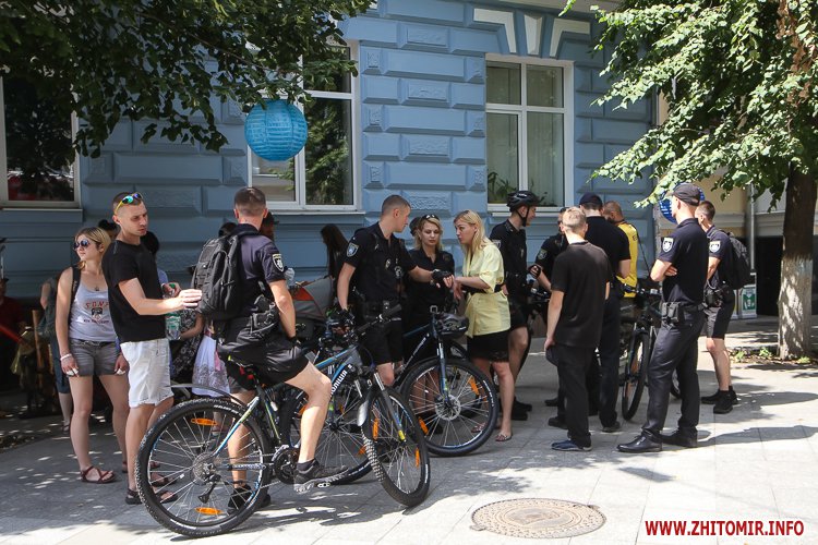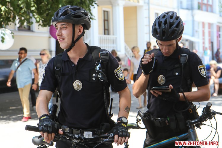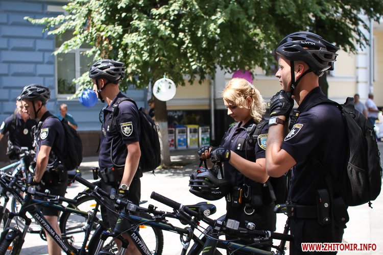 Відтепер Житомир патрулюватимуть шість патрульних на велосипедах, презентація велопатруля відбулася 5 серпня на Михайлівській.