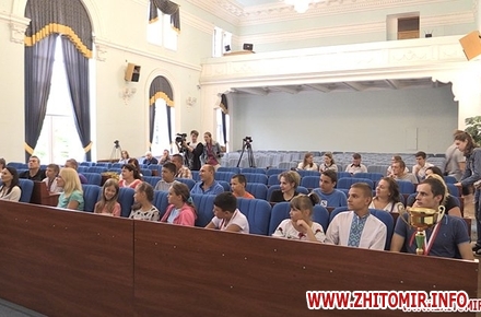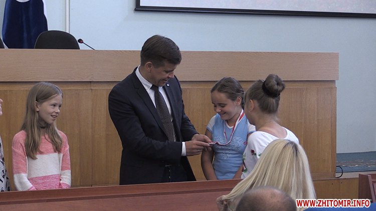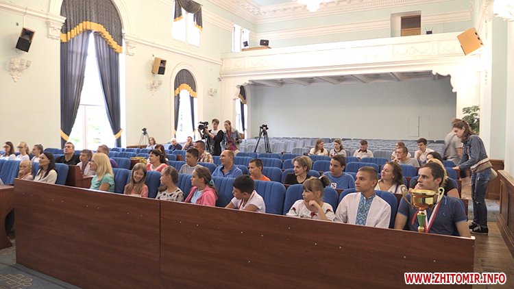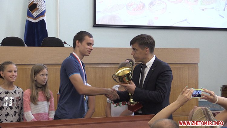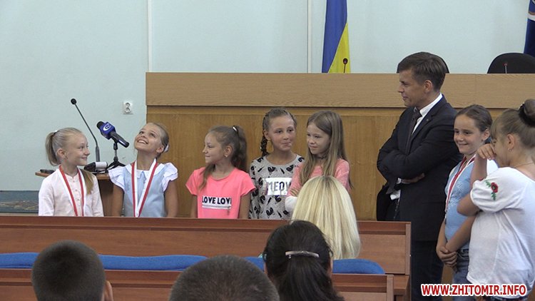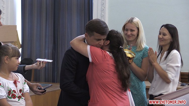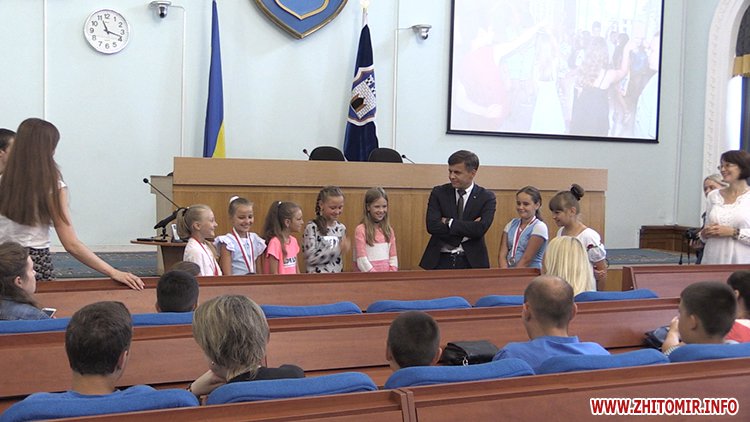 Не залишився без подарунків і мер Житомира Сергій Сухомлин, якому діти привезли кубок і прапор від мерії Кутаїсі.