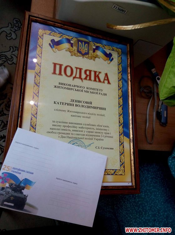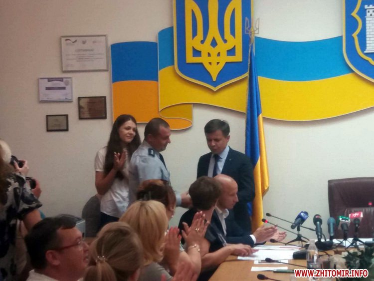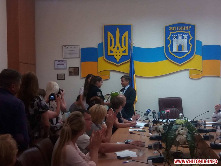 «За сумлінне виконання службових обов’язків, високу професійну майстерність ініціативу та наполегливість виявлені справі захисту прав і свобод громадян та з нагоди відзначення 2-ї річниці з Дня Національної поліції України», - зачитав мер Житомира Сергій Сухомлин.