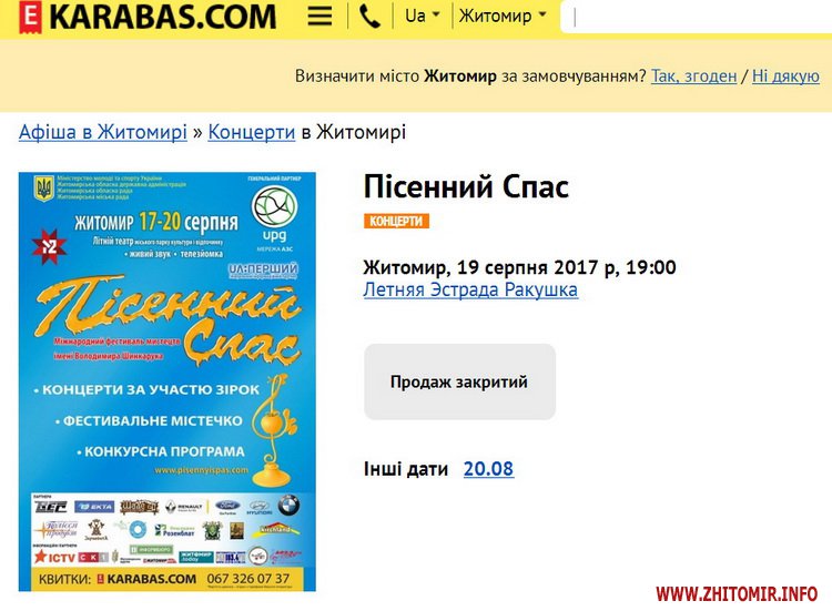 За телефоном, вказаним на житомирському сайті «Ваш білет», Житомир.info також відповіли, що квитки «вже не продаються» і вхід для глядачів вільний.