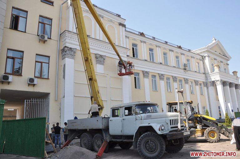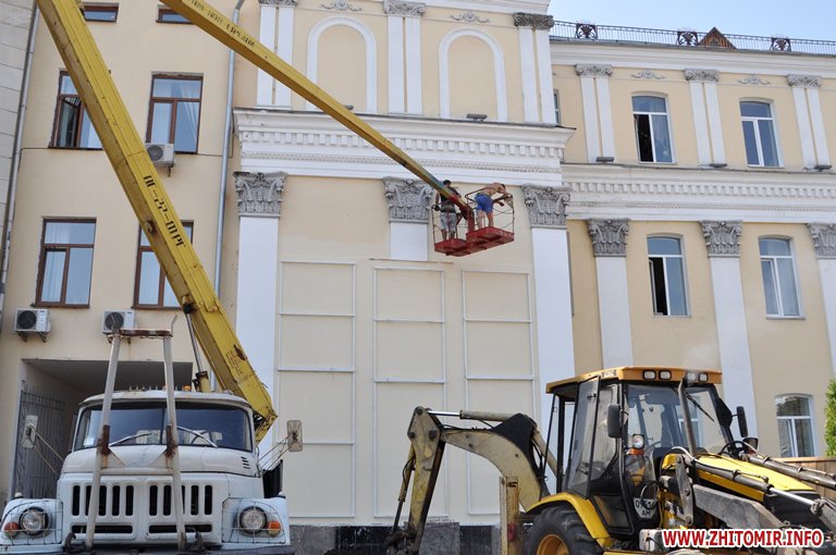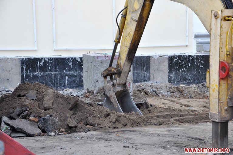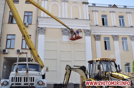На майдані Корольова для пам’ятника Героям Небесної Сотні вже встановили металічні рами – кріплення для триптиху, висота якого близько 8 метрів (два поверхи фасаду будівлі).
