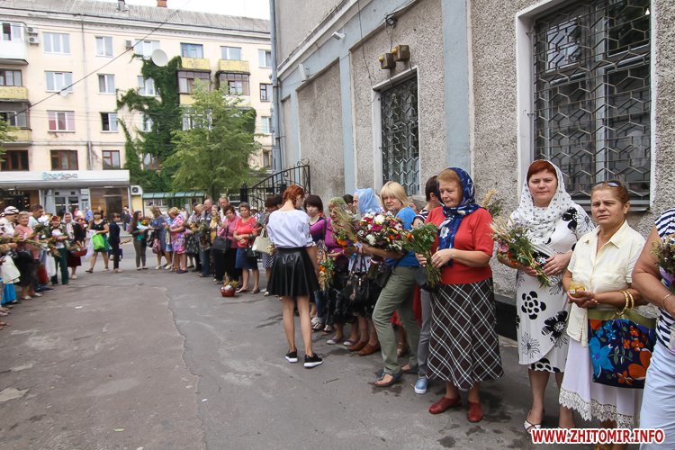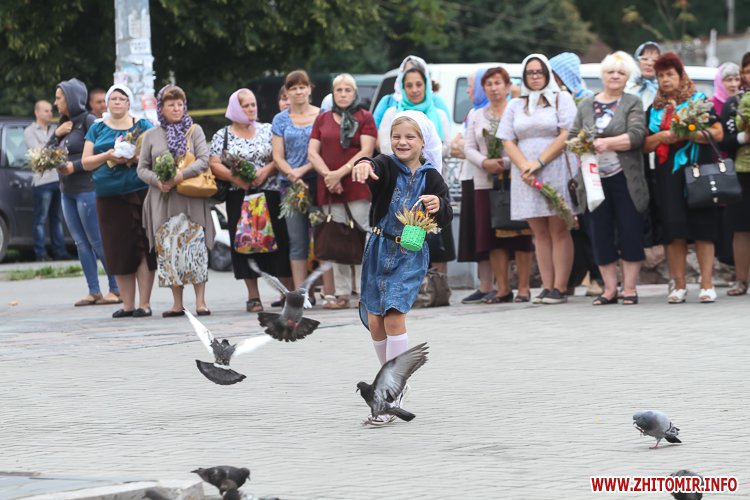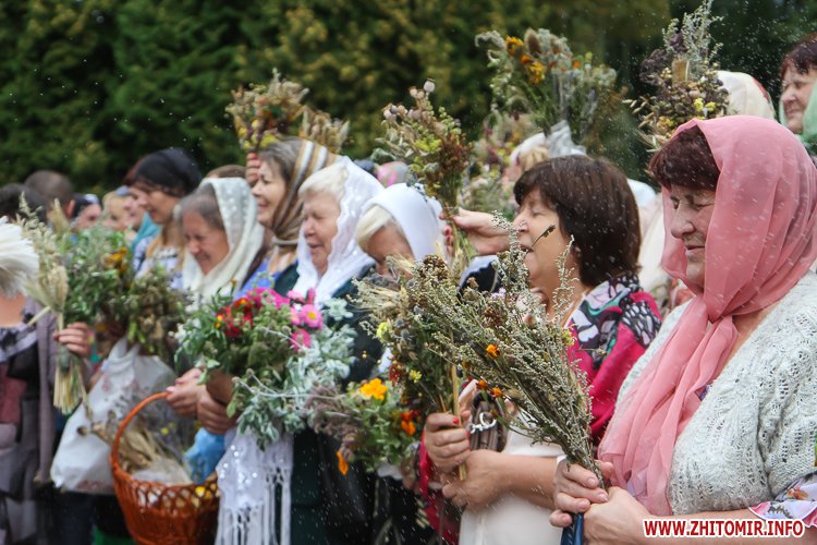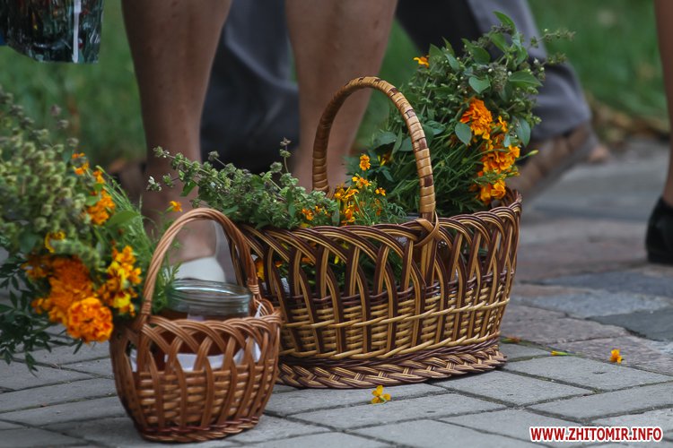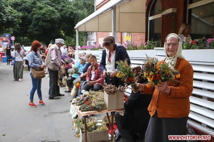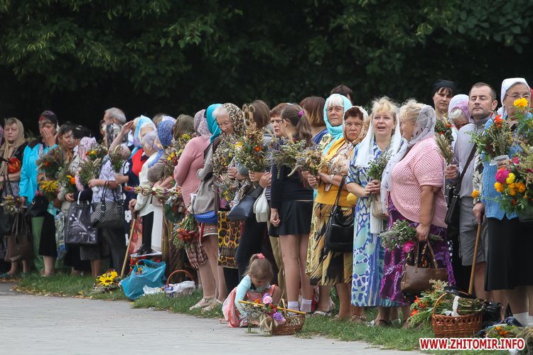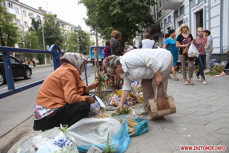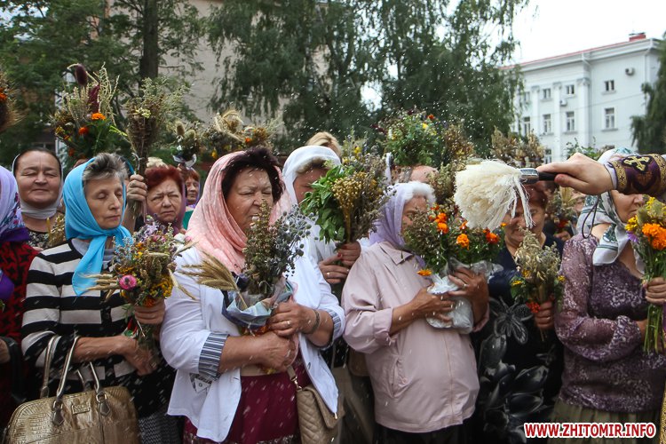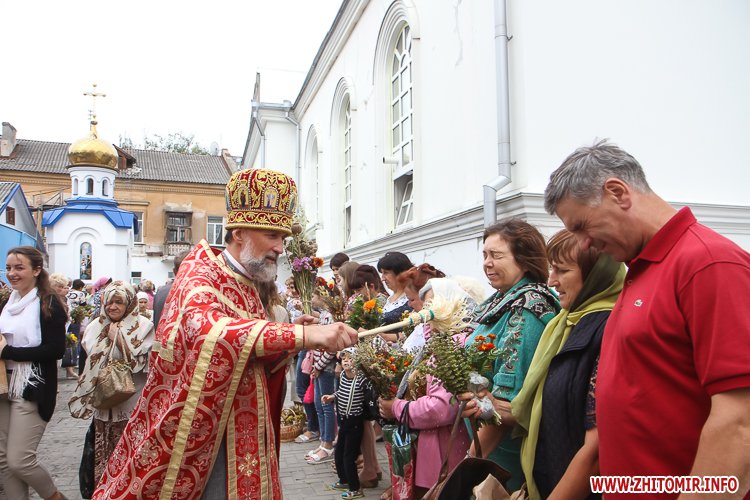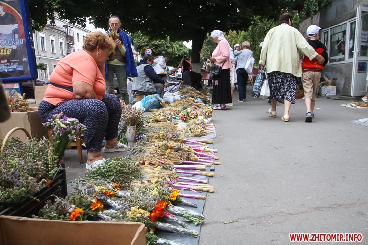 На підходах до житомирських соборів – цілий ярмарок, де можна купити кілька різновидів свіжого меду та неймовірну кількість різноманітних святкових букетиків. Найдешевші букетики коштують 4 грн, а в середньому букетик коштує 15-25 грн, є й значно дорожчі – за 35-55 грн.