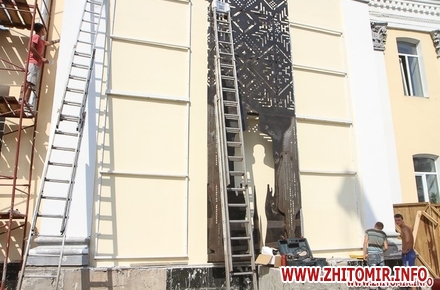 Нагадаємо, 15 серпня до адмінбудівлі на майдані Корольова привезли металеві конструкції пам’ятника - два восьмиметрові триптихи, які сягатимуть другого поверху. Пам’ятник Героям Небесної Сотні почали встановлювати 11 серпня.