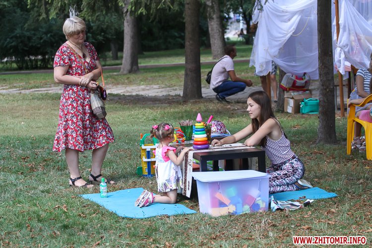 Після обіду до Дня індійської культури та мистецтва розпочався виступ та майстер-клас з індійського танцю. До 20:30 маленьких житомирян розвиватиме арт-студія «ТворчийЯ» (пісочна анімація та малюнки на воді).