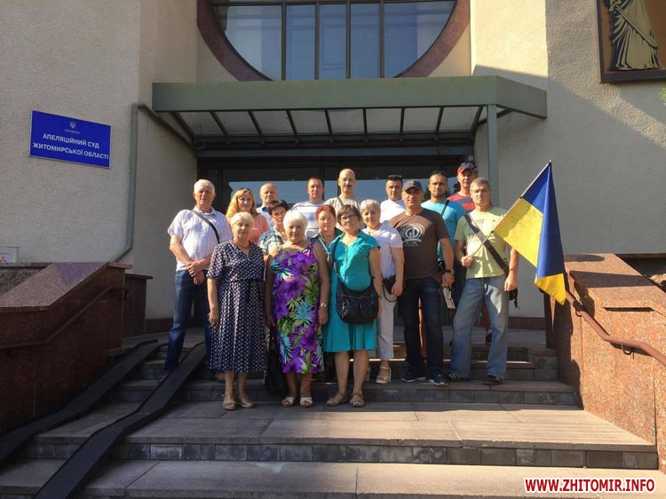 «Житомирські активісти та навіть хлопці з Новограда приїхали на судове засідання з самого ранку. З приміщення апеляційного суду до нас вийшов секретар і повідомив, що засідання не буде, тому що один із суддів пішов у відпустку, а іншого у цій справі ще не призначили. А також сказали, що сторону опонентів було повідомлено про це заздалегідь», - розповів громадський активіст Валерій Арушанян.