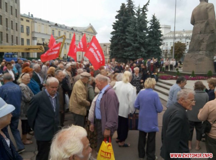 У Житомирі 22 серпня близько сотні пенсіонерів зібралися на мітинг біля будівлі облдержадміністрації.