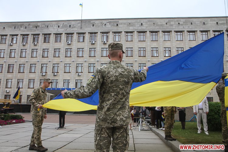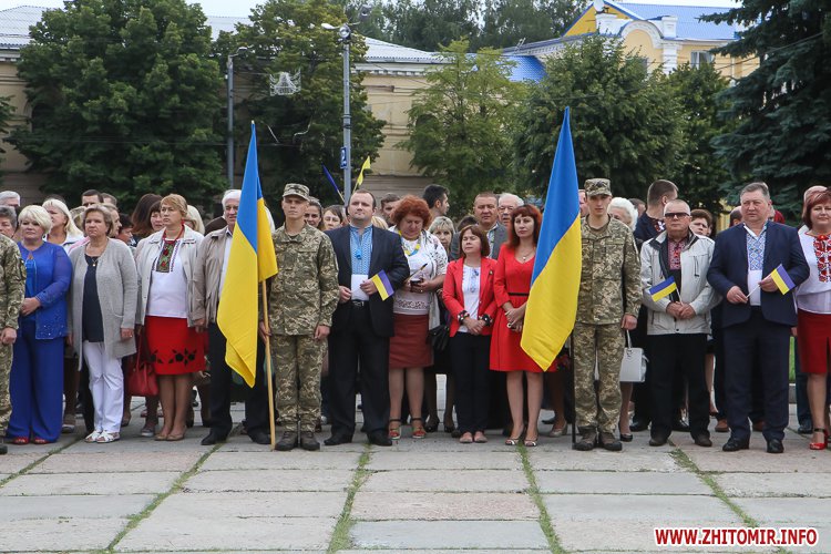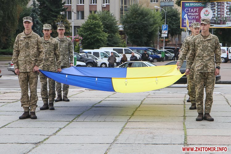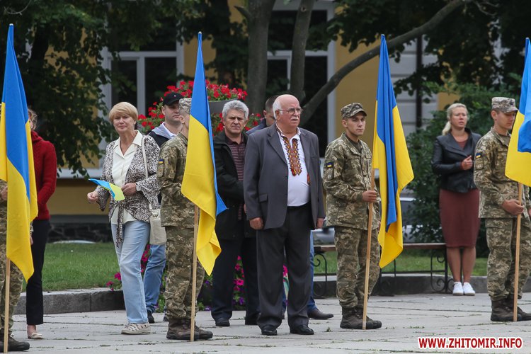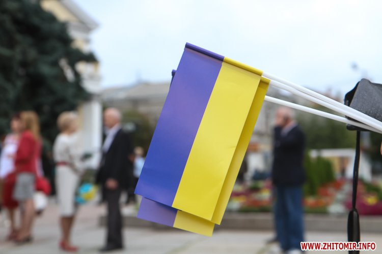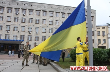 Вранці 23 серпня на майдані Корольова в Житомирі урочисто підняли Державний прапор України.