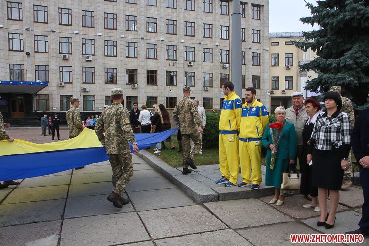 За даними ОДА, синьо-жовтий прапор підняли Заслужені майстри спорту України, Дефлімпійські чемпіони Ігор Завіруха та Олег Антонюк – вихованці Житомирської обласної школи інвалідів Житомирської облради, які вибороли друге місце XXIII Дефлімпійських ігор 2017 року з волейболу у м. Самсун в Туреччині.
