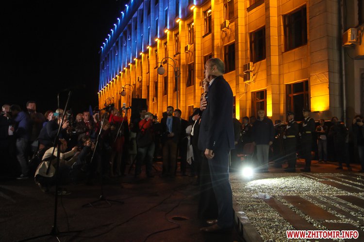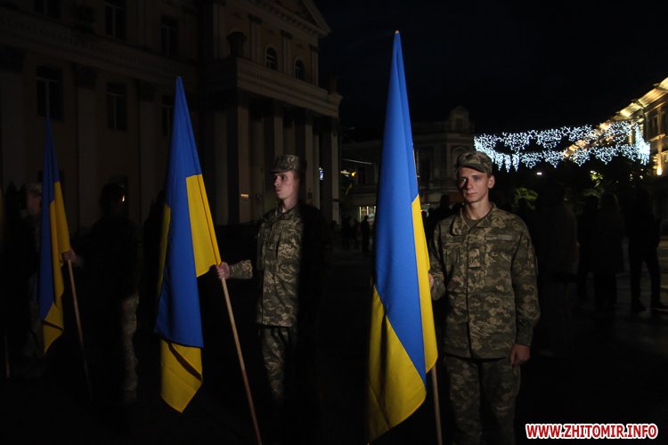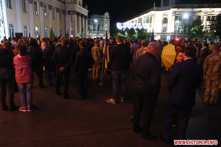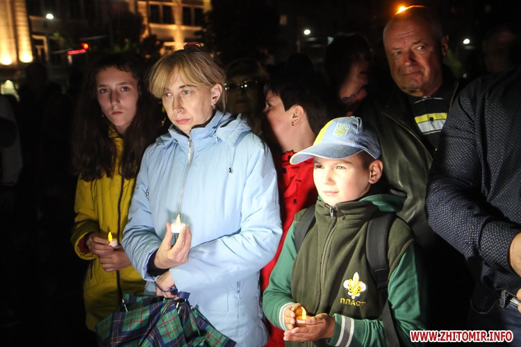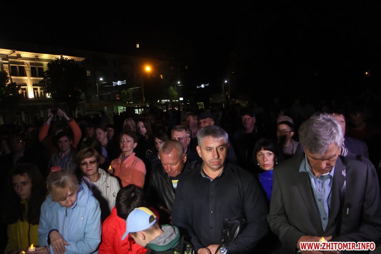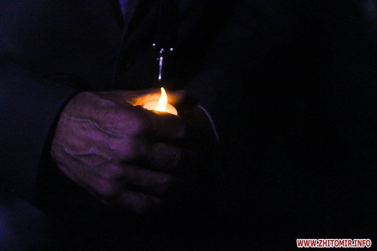 Незважаючи на заклики ОДА приходити з державною символікою та без свічок, деякі житомиряни запалили в пам'ять про загиблих на Майдані лампадки.