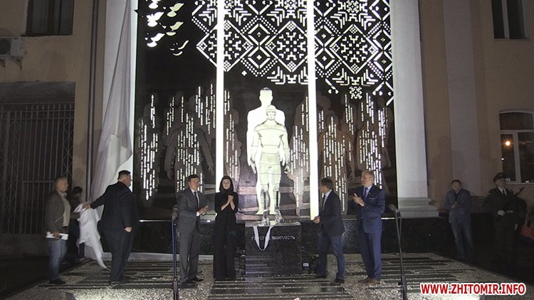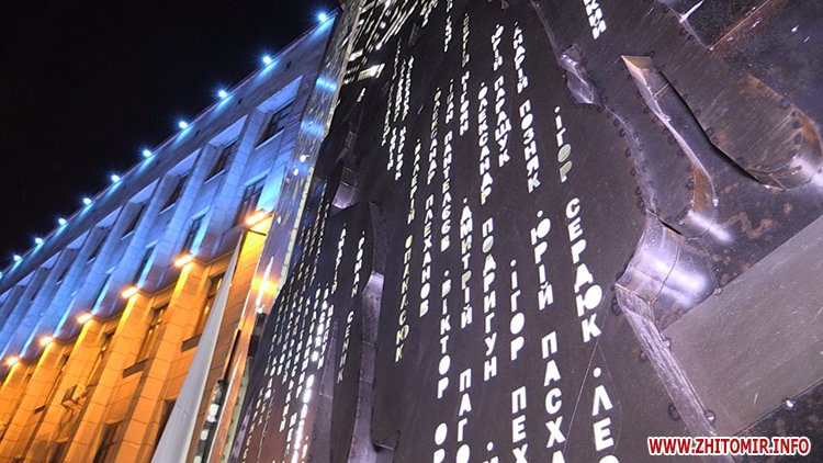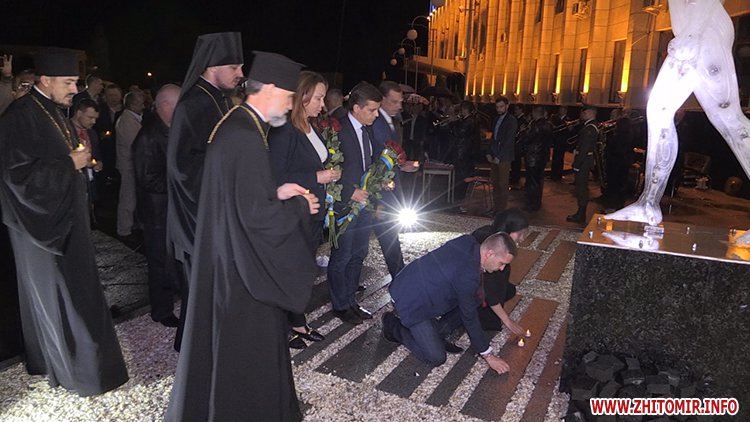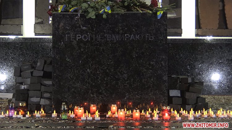 Рівно о 21:00 розпочався мітинг, під час якого члени родин загиблих відкрили меморіальний знак в центрі Житомира разом із Віце-прем’єр-міністром України, мером Житомира, головою ОДА та облради і співачкою Анастасією Приходько.