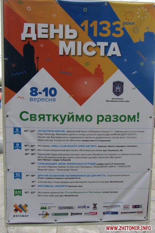 Как сообщал Житомир.info, в этом году День города собираются праздновать с 7 по 10 сентября, на улицах Житомира уже разместили афиши с анонсом основных праздничных мероприятий.