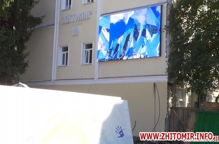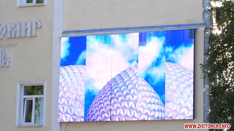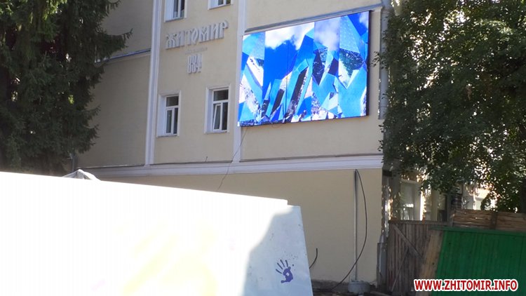 На центральной пешеходной улице Житомира 31 августа начали устанавливать экран для демонстрации видео и онлайн-трансляций. Представитель компании Rostmedia.TV, которая получила разрешение на установку, рассказал, что будут показывать на этом экране, и сообщил, что подобные экраны в городах Украины начали устанавливать не так давно.