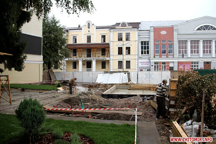 За його словами, попри бажання міської влади встигнути до свята Дня міста, це навряд можливо. Наразі до Житомира ще не прибуло обладнання, необхідне для повноцінної роботи фонтану. Лише після його встановлення будівельники зможуть викласти плитку навколо фонтану.