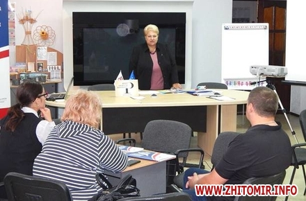 «На базі Житомирського обласного центру зайнятості 7 вересня розпочався дводенний тренінг із розвитку самозайнятості додатково сформованої групи з числа внутрішньо переміщених осіб. Директор обласного центру зайнятості Галина Корінна зазначила, що з початку військового конфлікту в Україні до центрів зайнятості Житомирщини за сприянням у працевлаштуванні звернулись майже 1500 тисячі мешканців Криму, Луганської і Донецької областей, на сьогодні потребують допомоги ще 85 таких громадян. Під час занять спільно з бізнес-тренером проекту Жанною Соловйовою учасники опрацьовуватимуть власні бізнес-ідеї й розпочнуть готувати бізнес-плани, які 13 вересня мають презентувати представникам Міжнародної організації з міграції в Україні. У разі успішного захисту своїх проектів вони отримають обладнання й устаткування вартістю, еквівалентною до 625 євро», - йдеться у повідомленні.