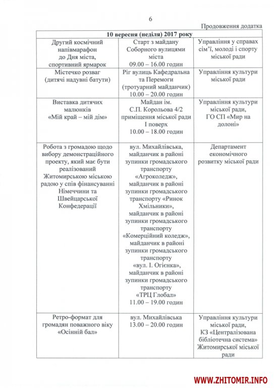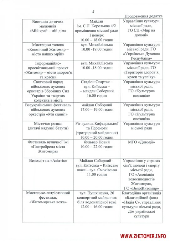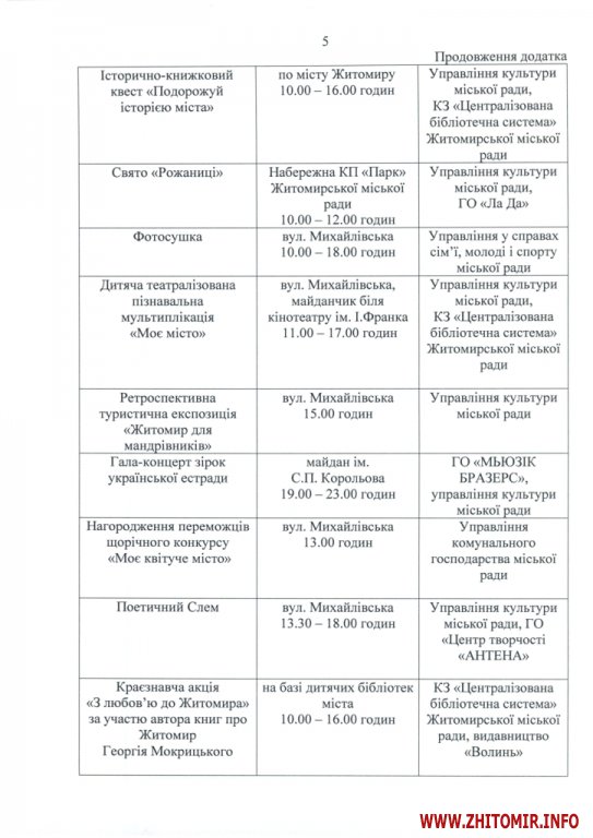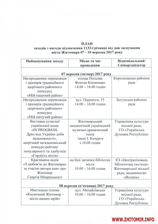 Нижче – план заходів до Дня міста, опублікований на сайті міської ради: