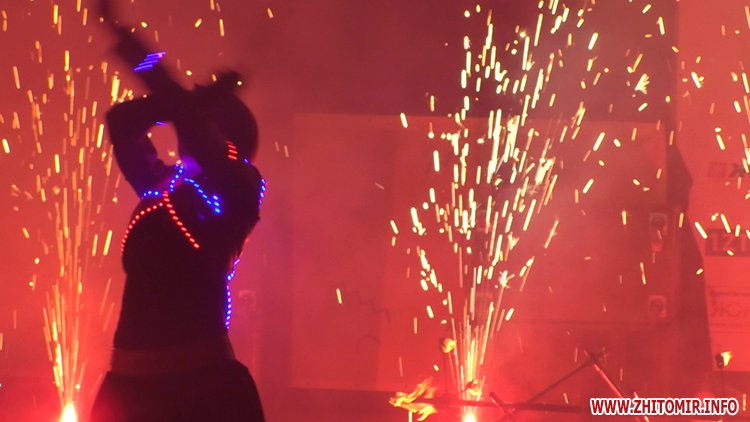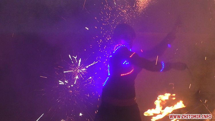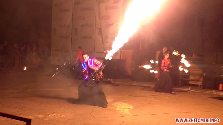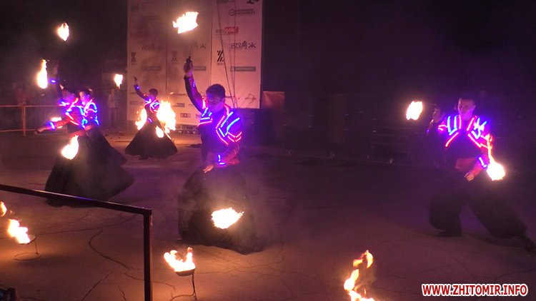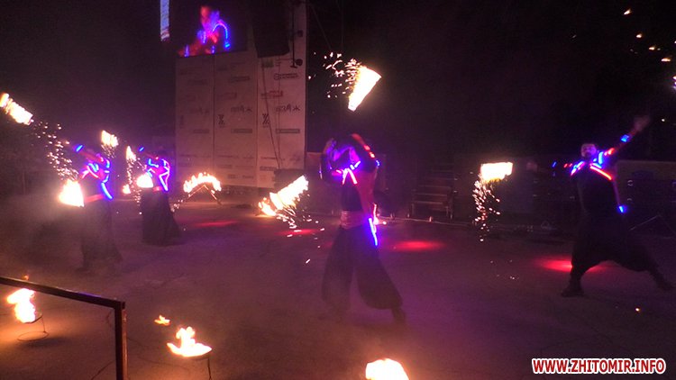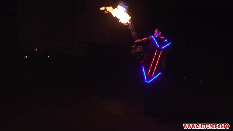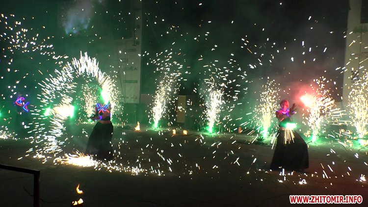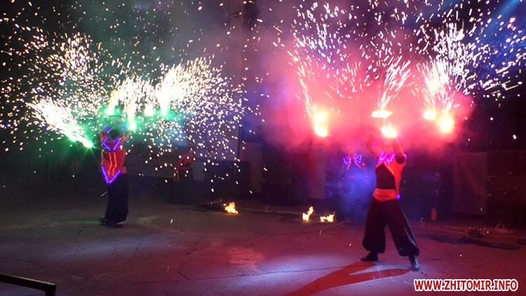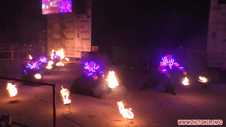 Житомиряни, які зібралися цього вечора на майдані Корольова, одразу після постановки сучасної версії балету «Лебедине озеро» від всесвітньовідомого балетмейстера Раду Поклітару побачили яскраве вогняне шоу.