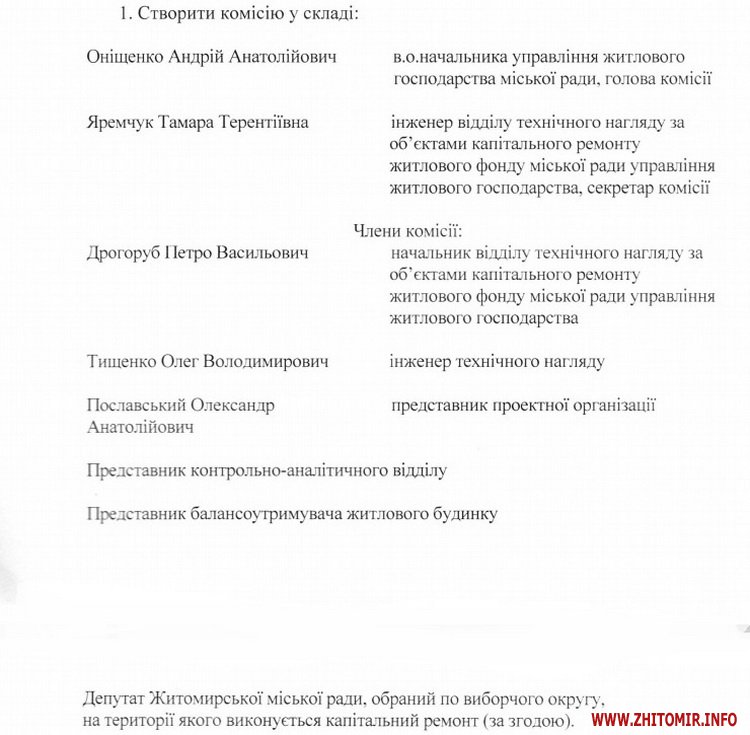 Розпорядження міського голови «Про створення комісії» опубліковане на сайті Житомирської мерії.