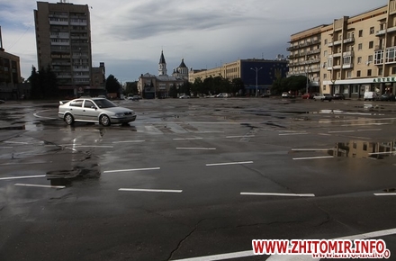 У Житомирі 15 вересня ввечері на майдані Соборному комунальники повторно наноситимуть дорожню розмітку.